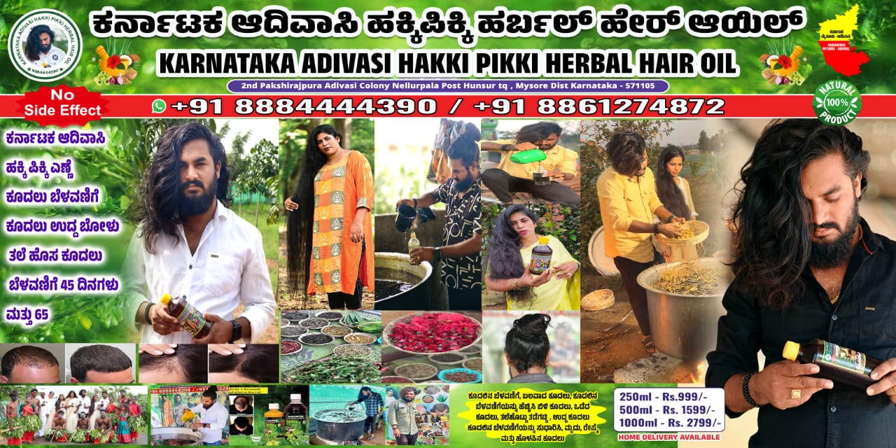 Karnataka AADIVASI HAKKI PIKKI HERBAL HAIR OIL +91 8884444390